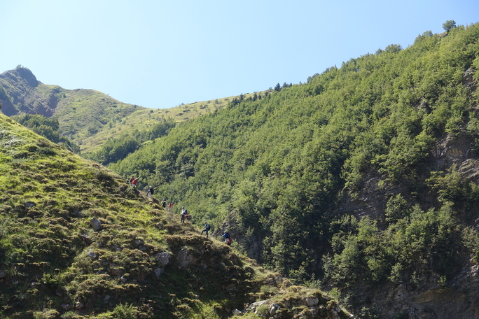 Η τρίτη μέρα ξεκινάει με ανάβαση από το χωριό ως τα τελευταία σπίτια του Παχτουρίου και ακολουθούμε το νεραγώγι που από ένα καταπληκτικό χτιστό μονοπάτι μας ανεβάζει πρώτα σε κρυφό καταρράκτη και μετά ψηλά στα λιβάδια του χωριού. Πως να μη θαυμάσεις τη μαστοριά και την υπομονή αυτών των ορεσίβιων ανθρώπων να προσπαθούν να δαμάσουν την φύση για την επιβίωσή τους. Βγαίνοντας ψηλά στα λιβάδια αντικρίζουμε τις απότομες πλαγιές και τα χτένια της Παχτουρνιάσκας. Η διάσχιση αυτών των κοφτερών χτενιών αποτελεί μια απαιτητική και δύσκολη διαδρομή. Εμείς ανεβαίνουμε δίπλα στην ομαλή κορυφή, τελευταίο βουνό της διάσχισής μας, το πραγματικό όμορφο και άγνωστο Τσιγκόρι. Πορεία ανατολική μας φέρνει σε αυχένα με μεγάλους κούκους, και διασχίζοντας την κατάφυτη κοιλάδα κατεβαίνουμε στο τέλος της διαδρομής στο χωριό Αρματολικό.