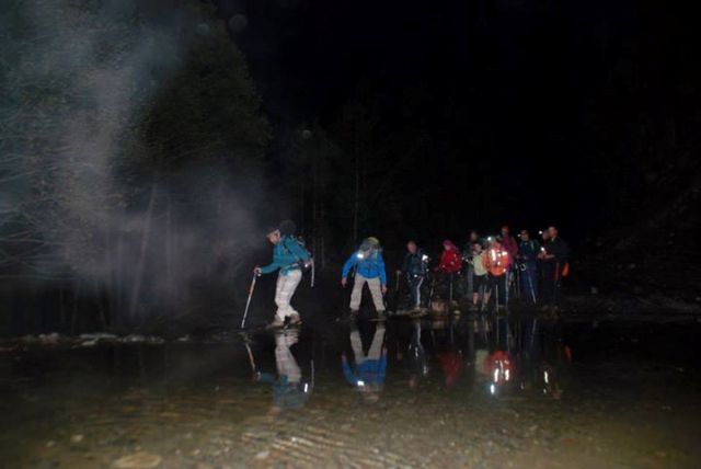 Φτάνουμε στο Αρκουδόρεμα και αφού κινηθούμε για λίγο παράλληλα με αυτό το διασχίζουμε πατώντας σε πέτρες. Μετά από λίγο καλούμαστε να το ξαναπεράσουμε βγάζοντας αυτή τη φορά τα παπούτσια μας. Είναι η πρώτη μας ψυχρολουσία αλλά μετά από αυτό τα πόδια μας έχουν αναζωογονηθεί. Κινούμαστε και πάλι δίπλα στο ρέμα θαυμάζοντας το δάσος αλλά και την άγρια ροή του ρέματος. Η διαδρομή είναι ομαλή χωρίς μεγάλες υψομετρικές διαφορές. Φτάνουμε στο ρέμα και το περνάμε βγάζοντας τα παπούτσια μας, συνολικά το περνάμε 5 φορές. Η ώρα περνάει και πλέον ήμαστε σίγουροι πως θα μας βρει η νύχτα μέσα στο ρέμα. Απολαμβάνουμε τη διαδρομή αποχαιρετώντας τις τελευταίες ακτίνες του ήλιου και μετά από λίγο βρισκόμαστε στη θέση Σμιξώματα όπου σμίγει το Αρκουδόρεμα με τον Αώο. Σε αυτό το σημείο το Αρκουδόρεμα είναι πολύ μεγαλύτερο από τον Αώο ο οποίος μοιάζει με ένα ρυάκι μπροστά του. Αποφασίζουμε να ακολουθήσουμε την πιο εύκολη και γρήγορη διαδρομή περπατώντας στο χωματόδρομο που οδηγεί στο καταφύγιο. Κατεβαίνουμε στο ρέμα, βγάζουμε τα παπούτσια μας και περνάμε και τα δύο ρέματα υπό το φως των φακών(που δεν πρέπει ποτέ να λείπουν από το σάκο μας).