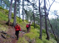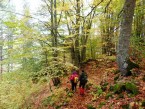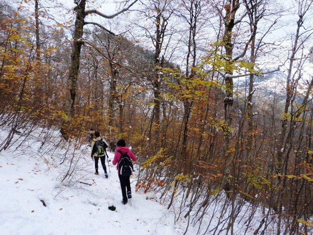 Η ομάδα αποφασίζει να συνεχίσει τη διαδρομή και να μη γυρίσει πίσω (όπως ήταν οι αρχικές σκέψεις). Ο αρχηγός συμβουλεύεται τον χάρτη και βρίσκουμε το μονοπάτι που θα μας βγάλει στο Αρκουδόρεμα. Το Αρκουδόρεμα είναι παραπόταμος του Αώου και πηγάζει στην κοιλάδα Βάλια Κάλντα. Ο πυρήνας του Εθνικού Δρυμού της Πίνδου μαζί με την περιφερειακή ζώνη (τις πτυχώσεις του Λύγγου και του Μαυροβουνίου), αποτελούν τη Βάλεα ντι λα Ούρσα (κοιλάδα της αρκούδας- γνωστή ως Αρκουδόρεμα). Καθώς κατεβαίνουμε το τοπίο αλλάζει και πλέον η ορατότητα αυξάνεται. Μπαίνουμε σε δάσος οξιάς και δυστυχώς το κρύο έχει ρίξει τα περισσότερα φύλλα στερώντας τους τη φθινοπωρινή φυλλωσιά. Τη διαδρομή μας διακόπτουν διάφορα μικρά ρέματα σχηματίζοντας λιμνούλες και καταρράκτες μέσα σε μια πανδαισία χρωμάτων από τα πεσμένα φύλλα. Πλέον δεν υπάρχει χιόνι στο μονοπάτι μας και οι οξιές μας χαρίζουν θαυμάσιο θέαμα όπως και οι ολόισοι κορμοί πεύκης.
