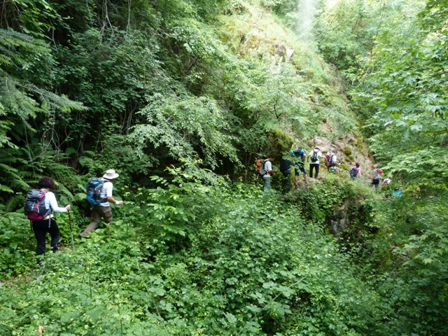Περπατάμε κάτω από τις φυλλωσιές των δέντρων πάνω σε καλοφτιαγμένο κατηφορικό μονοπάτι μέχρι να φτάσουμε σε εικονοστάσι από όπου θαυμάζουμε το μεγαλείο της χαράδρας του Ασπρορέματος. Γύρω μας εκτός από τις πανέμορφες ορχιδέες και τα άλλα λουλούδια υπάρχουν πάρα πολλές αγριοφράουλες τις οποίες δεν χάνουμε την ευκαιρία να τις δοκιμάσουμε. Συνεχίζουμε και φτάνουμε στον εγκαταλελειμμένο πλέον οικισμό Εκκλησιές όπου υπάρχει ένα ωραίο πλάτωμα για να κάνουμε το διάλειμμά μας. Το μονοπάτι αυτό κατασκευάστηκε από τη ΜΟΜΑ και μάλιστα έχει πάνω του τα απομεινάρια από τους στύλους του ΟΤΕ που συνέδεαν παλιά τον οικισμό του Ασπρορέματος με τον υπόλοιπο κόσμο...