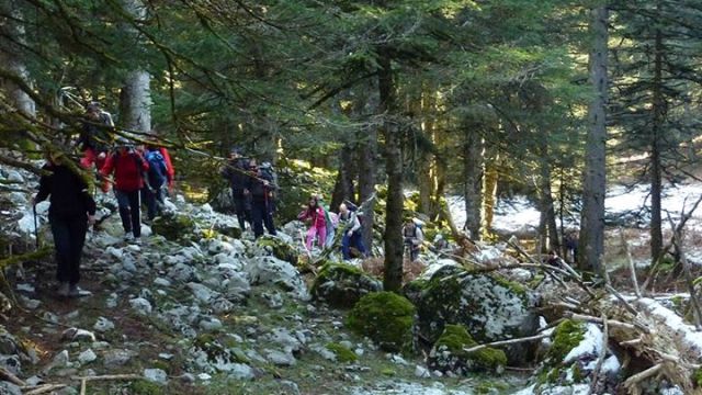 Φτάνουμε σε μεγάλο λιβάδι το οποίο διασχίζουμε και από εκεί και μετά αρχίζει το τελευταίο στάδιο της ανάβασής μας. Μέσα από πυκνό δάσος φτάνουμε στην κορυφογραμμή από την οποία έχουμε πανοραμική θέα: Τζουμέρκα, Τύμφη, Νεμέρτσικα από τη μία μεριά, Λευκάδα και Κεφαλλονιά στο Ιόνιο, προς το νότο Παναιτωλικό, Παναχαϊκό και στο βάθος ο Ερύμανθος. Δίπλα μας τα όρη Βάλτου και λίγο πιο πίσω τα άγρια Άγραφα.