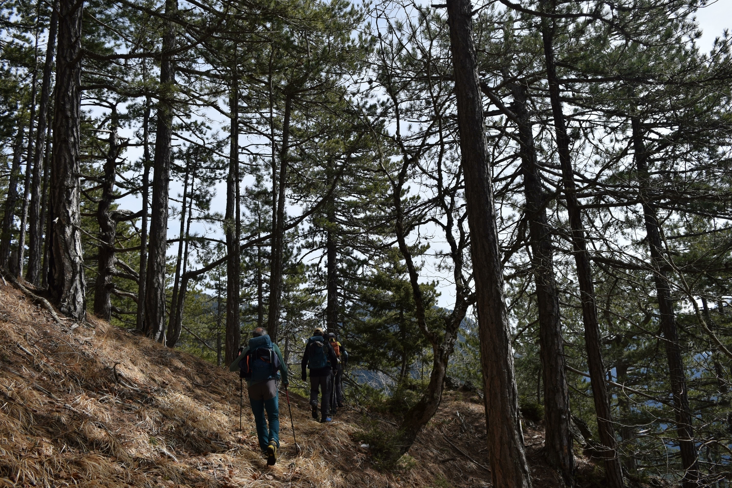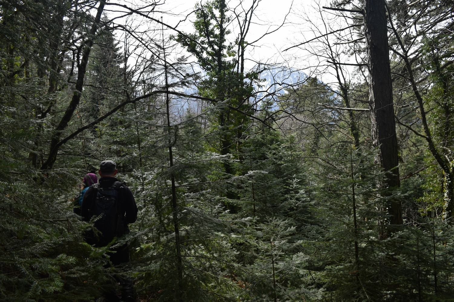 Στη συνέχεια παίρνουμε το μονοπάτι που θα μας οδηγήσει στη θέση Μπιστέρια στη Στάνη των αδερφών Σπανού. Το τοπίο εδώ αλλάζει και τραβερσάρουμε κάτω από τις κορυφές της Τραπεζίτσας και του Ροϊδοβουνίου μέσα σε ένα πυκνό δάσος από έλατα το οποίο σε κάποια σημεία μας αφήνει να κρυφοκοιτάξουμε τη θέα της Τύμφης που βρίσκεται αντίκρυ μας. Το μονοπάτι είναι πολύ όμορφο και η ήπια κλίση του είναι μια καλοδεχούμενη αλλαγή για τα ταλαιπωρημένα μας πόδια. Αφού φτάσουμε στην εγκαταλελειμμένη πια στάνη και κάνουμε την απαραίτητη στάση και ακούσουμε κάποιες ιστορίες για την φιλοξενία των ιδιοκτητών της, έρχεται η ώρα να συνεχίσουμε πια το δρόμο μας. Από το σημείο αυτό και μετά το μονοπάτι χάνεται σε πολλά σημεία και μόνο χάρη στην εμπειρία του Κώστα Νικολόπουλου από τον ΕΟΣ Κόνιτσας που ήταν στην παρέα μας μπορέσαμε να το βρούμε.