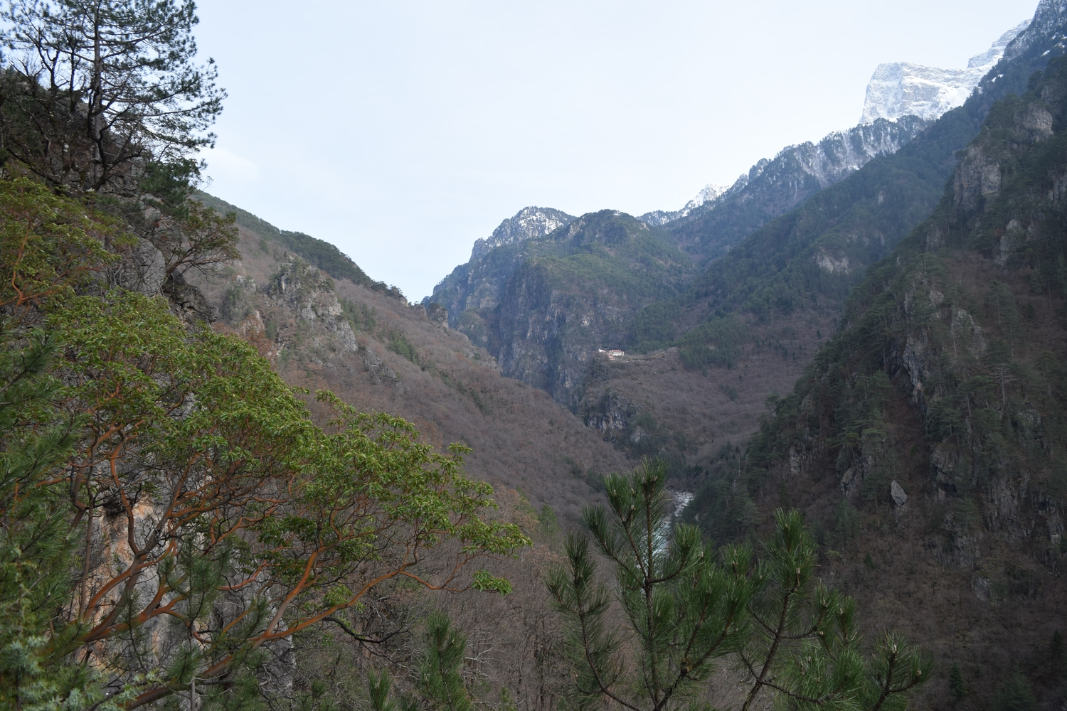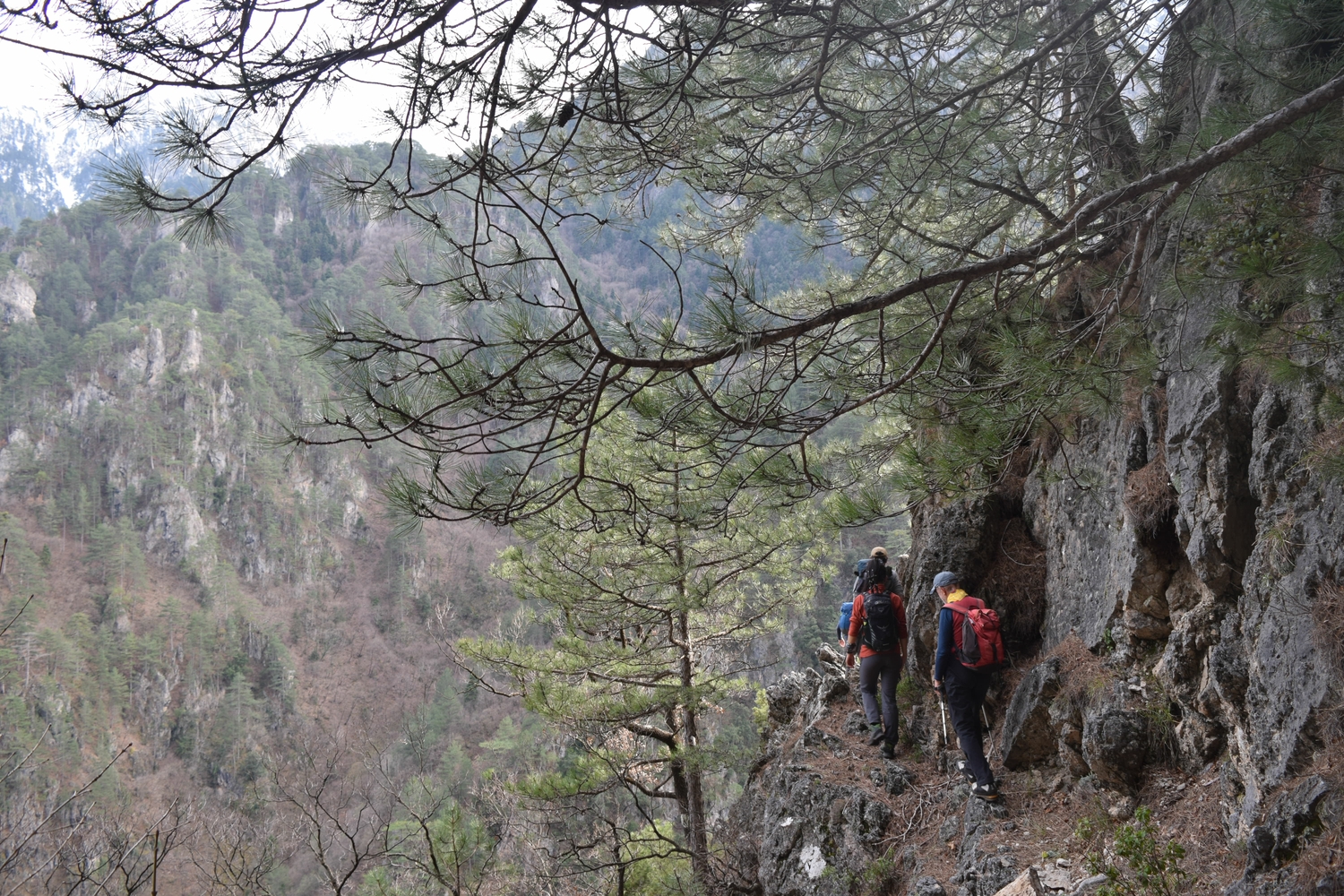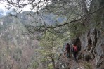 Η κατηφόρα απαιτητική και δεν μας αφήνει να απολαύσουμε την κατάβαση όσο θα θέλαμε αφού όλες μας οι αισθήσεις βρίσκονται μόνιμα σε εγρήγορση. Καθώς κατεβαίνουμε αρχίζουμε πλέον να ακούμε καθαρά τη βουή του Αώου που βρίσκεται μερικές εκατοντάδες μέτρα χαμηλότερα από εμάς και σύντομα κλέβουμε κάποιες ματιές στα ορμητικά νερά του. Σύντομα φθάνουμε στην όχθη του την οποία και ακολουθούμε βαδίζοντας πάνω σε μέρος της via ferata μέχρι να φτάσουμε στο τοξωτό γεφύρι της Κόνιτσας και να ολοκληρώσουμε την πορεία μας.