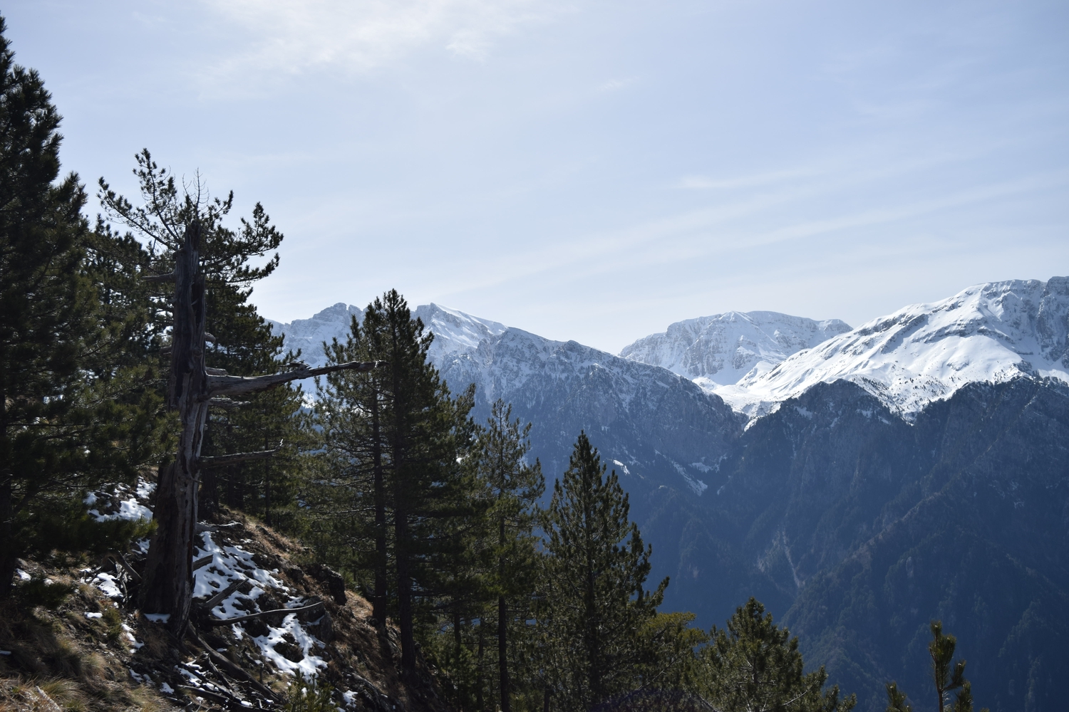 Η διαδρομή μας ξεκινάει από το εκκλησάκι της Αγίας Βαρβάρας στην Κόνιτσα και κινείται σε καλοσηματοδοτημένο μονοπάτι το οποίο ακολουθεί απότομη και ανηφορική κόψη η οποία προσφέρει απρόσκοπτη θέα στον ορεινό όγκο της Τύμφης όπου διακρίνονται ο Λάπατος, η Αστράκα και η επιβλητική Γκαμήλα. Η υψομετρική διαφορά που καλούμαστε να καλύψουμε είναι 1.000 μέτρα περίπου κάτι το οποίο μας πήρε περίπου 3 κοπιαστικές ώρες με μόνη παρηγοριά την ανεπανάληπτη θέα. Φτάνοντας στην κορυφή Αημηνάδια κάνουμε μια μεγάλη στάση τόσο για να ξεκουραστούμε από τη συνεχή ανηφόρα όσο και για να απολαύσουμε την θέα στην Τύμφη.