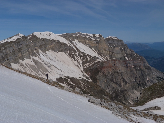 Η ανάβαση συνεχίζεται σχεδόν χωρίς διαλείμματα με καθαρό προσανατολισμό την κορυφή με την οποία όμως δεν υπάρχει οπτική επαφή. Φτάνουμε λίγο κάτω από την κορυφή και βλέπουμε από πάνω μας να σχηματίζονται πολλές κορνίζες. Προχωράμε γρήγορα για να απομακρυνθούμε από τυχόν πτώση τους. Λίγο πριν την κατάκτηση της κορυφής η κλίση ομαλοποιείται και τα βήματα στο χιόνι δίνουν ευχαρίστηση παιχνιδιού. Ουσιαστικά η Μπρέσιανη δεν είναι μια κορυφή με την "κλασσική" έννοια, είναι ένα αλπικό οροπέδιο στους ντόπιους γνωστό και με το όνομα Πλάκα.