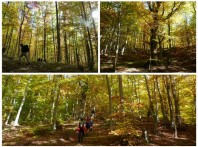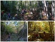 Μετά από περίπου 2 ώρες εγκαταλείπουμε το φαράγγι και βγαίνουμε σε ένα δασικό δρόμο. Τον ακολουθούμε για λίγο και ξαναμπαίνουμε σε μονοπάτι που σε κάποια σημεία ακολουθεί εγκαταλειμμένο δασικό δρόμο. Περπατάμε μέσα στο δάσος και γύρω μας ξεφυτρώνουν διάφορα μανιτάρια τα οποία ομορφαίνουν ακόμα περισσότερο το τοπίο και κάποια στιγμή βρίσκουμε και μια φοβισμένη σαλαμάνδρα. Μετά από μια επίπονη ανάβαση μέσα σε πανέμορφο δάσος φτάνουμε στη θέση Τυροκομείο σε υψόμετρο 1.700μ. περίπου. Το θέαμα που αντικρίζουμε μας κόβει την ανάσα, δάσος οξιάς μας περιστοιχίζει και τα φύλλα τους έχουν όλα τα πιθανά χρώματα. Από εκεί αρχίζει και η τελικά ανηφόρα μέχρι το διάσελο της Μικρής Τζένας στα 1.825μ.. Μετά από 4:30 ώρες πορείας φτάνουμε στο διάσελο. Εδώ υπάρχουν δύο επιλογές, είτε κατευθυνόμαστε προς τη Μικρή Τζένα (2.067μ.) , είτε στη Μεγάλη Τζένα (2.175μ.). Οι 2 κορυφές απέχουν 1 ώρα από το διάσελο. Οι περισσότεροι αποφασίζουν να ανέβουν στη Μικρή μιας και φαίνεται να έχει και καλύτερη θέα αλλά και πιο ενδιαφέρουσα ανάβαση.