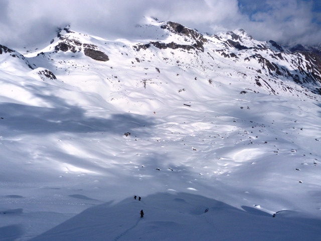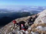 Κινούμαστε για λίγο στην κορυφοργραμμή με κατεύθυνση τη Σκλάβα αλλά οι περισσότεροι από μας κατεβαίνουμε προς τη βόρεια πλευρά. Το χιόνι είναι αρκετά παγωμένο και το περπάτημά μας είναι ευχάριστο πάνω στην πλαγιά. Κατεβαίνουμε προς τα κάτω έχοντας σαν στόχο να "κυκλώσουμε" το βουνό και να βγούμε στο δρόμο από όπου ξεκινήσαμε. Το χιόνι είναι πλέον πιο μαλακό με αποτέλεσμα να κάνει την πορεία μας δύσκολή, ειδικά για κάποιους που πέφτουν μέσα μέχρι τη μέση. Γρήγορα βγαίνουμε στο δρόμο και από εκεί φτάνουμε στα αυτοκίνητά μας.