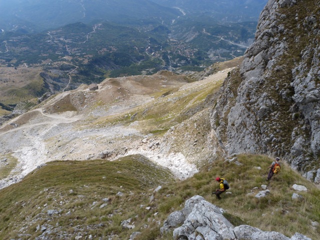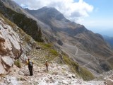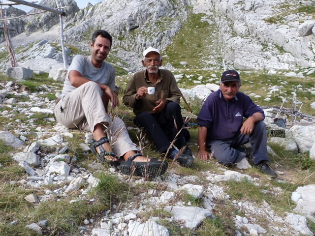 Μέσα από την κουβέντα μάθαμε πως για να ανέβουν στην Μπρέσιανη με τα ζώα δεν χρησιμοποίησαν τη Σκάλα του Σταμάτη από την οποία ήρθαμε εμείς μιας και την θεωρούσαν επικίνδυνη για τα ζώα αλλά ένα άλλο σύρμα. Μας εξήγησαν πως το σύρμα αυτό λίγο μετά την Μπρέσιανη (κατευθυνόμενοι προς το καταφύγιο) χωρίζει από την Σκάλα ανεβαίνει προς τα πάνω, περνάει ουσιαστικά πάνω από τη Σκάλα κινείται συνέχεια ψηλά και αρχίζει να κατηφορίζει λίγο πριν το καταφύγιο για να καταλήξει σε αυτό. Στην επιστροφή μας προσπαθήσαμε να το βρούμε και πράγματι μέχρι ενός σημείου το βρήκαμε και βάλαμε κάποιους κούκους αλλά φτάνοντας σε μια απότομη ρεματιά δεν μπορέσαμε να καταλάβουμε πως πέρασαν τα ζώα από εκεί και θεωρώντας πως κάπου είχαμε κάνει λάθος επιστρέψαμε πίσω. Κάποια στιγμή ξαναβρήκαμε τον κ. Δημήτρη και είπε πως είδε τους κούκους μας και πως είχαμε πάει σωστά και με λίγο ψάξιμο θα βρίσκαμε το πέρασμα στη ρεματιά. Για τα επόμενα δύο χρόνια η ιδέα να βρούμε το μονοπάτι ήταν στο μυαλό μας, αλλά μπορέσαμε να την υλοποιήσουμε φέτος.