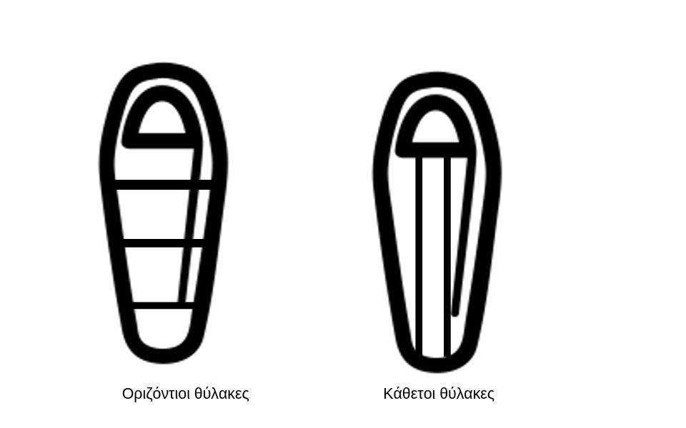 - οριζόντιοι: οι υπνόσακοι με οριζόντιους θύλακες είναι πιο ζεστοί από τους αντίστοιχους με κάθετους.