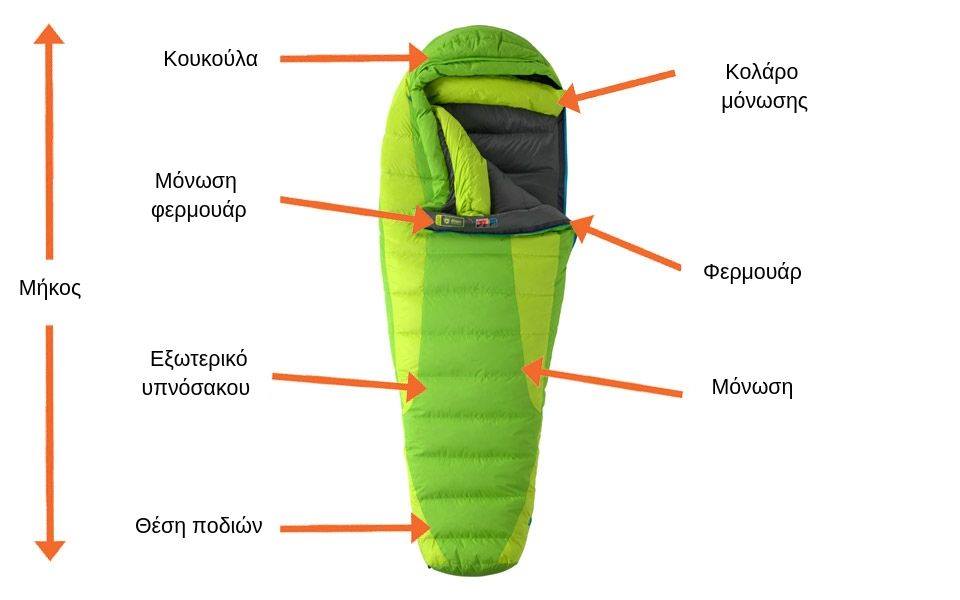 - Θήκη υπνόσακου: μέσα σε αυτή μπαίνει ο υπνόσακος ώστε να μπορεί να μεταφέρεται εύκολα